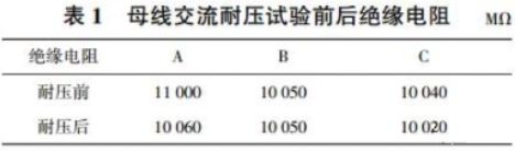 從耐壓實驗進程和表1絕緣電阻數據來看,該35kV 充氣柜母線耐壓實驗合格。